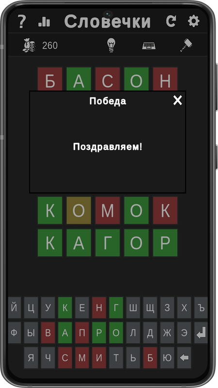Заработанные монеты можно использовать для всевозможных подсказок: открывать буквы на клавиатуре, удалять ненужные буквы...
