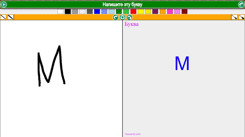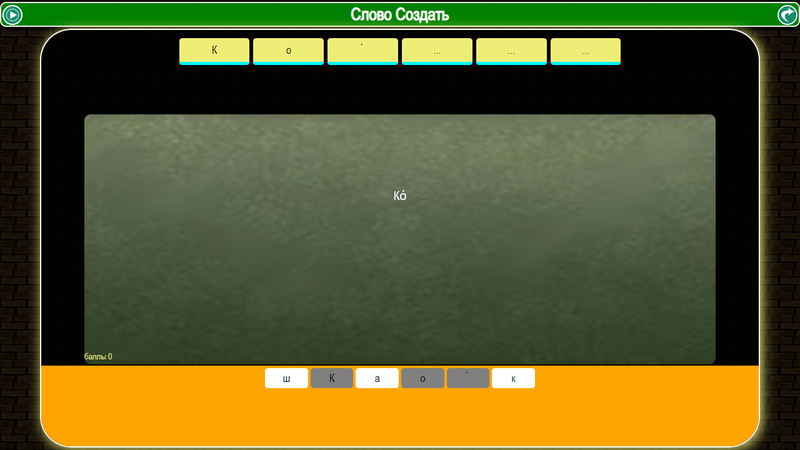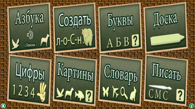 Предусмотрены два варианта игры: доска для рисования и тест для проверки полученных знаний.