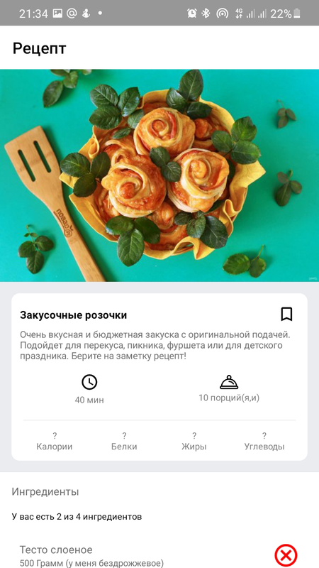 20 мая 2022, 16:01Бесполезное приложение. Почти все блюда на 95% состоят из продуктов, которых нет