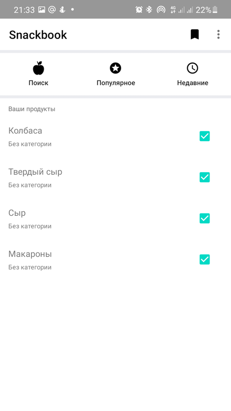 «Рецепты на основе своих ингредиентов - Snackbook»