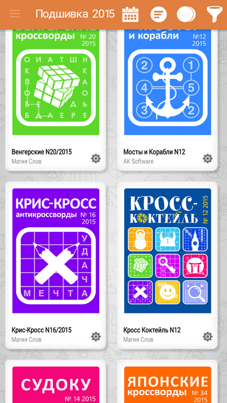 Предложенные подшивки содержат разные типы головоломок: сканворды, кроссворды, судоку, какуро и другие.