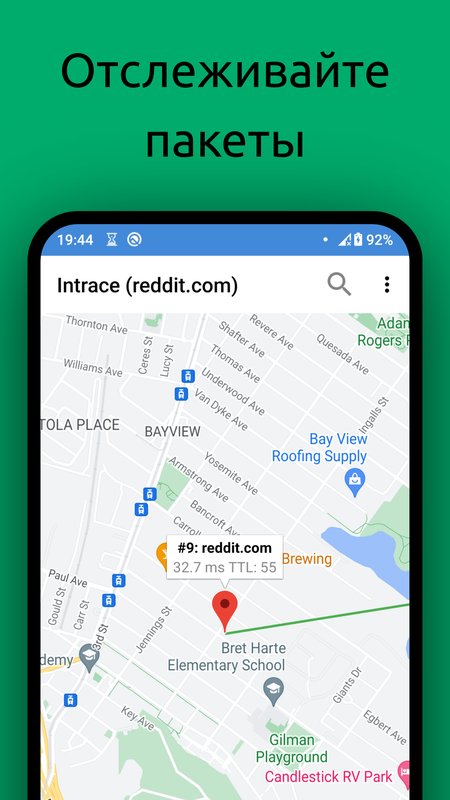 Visual traceroute позволяет легко определить любой маршрут следования данных. Эта сетевая утилита дает возможность выяснить, по каким компьютерам и через какие сервера пропускаются ваши данные, если вы желаете посетить определенный веб-ресурс в сети или же обратиться к конкретному серверу. Intrace для Android не только указывает путь, но и демонстрирует процесс его прохождения на карте. Другими словами, Intrace покажет вам не только пройденные вами адреса, но и где именно расположены сервера, через которые прошел пакет с данными.