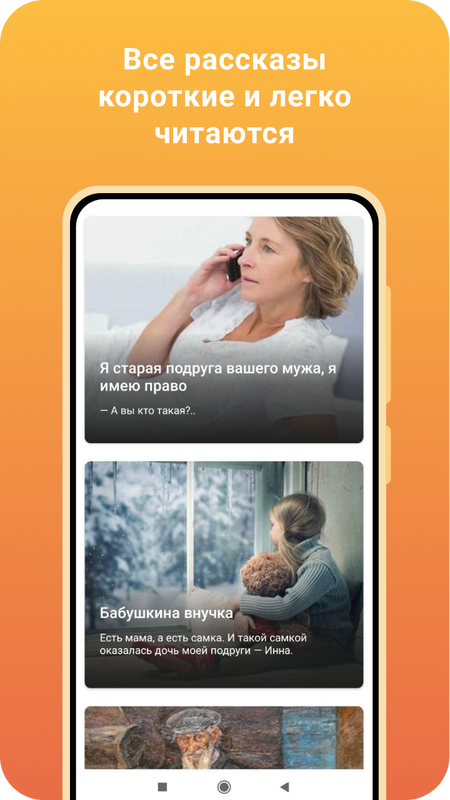 Каждый день приложение будет радовать вас новыми историями. Новые рассказы появляются в приложении сами, обновлять приложение для этого не нужно.