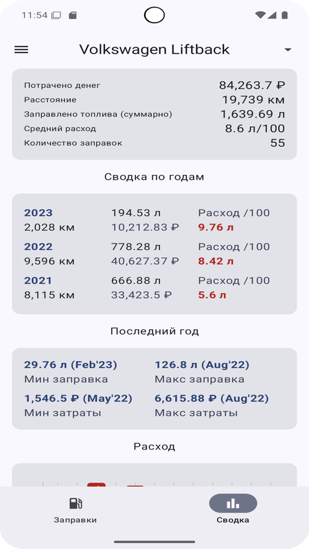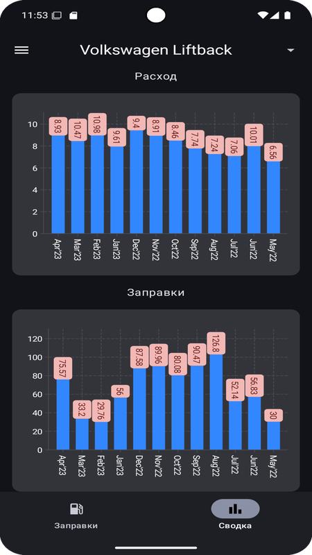 Простая и понятная "записная книжка" для учета потраченного топлива и денег.