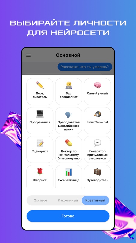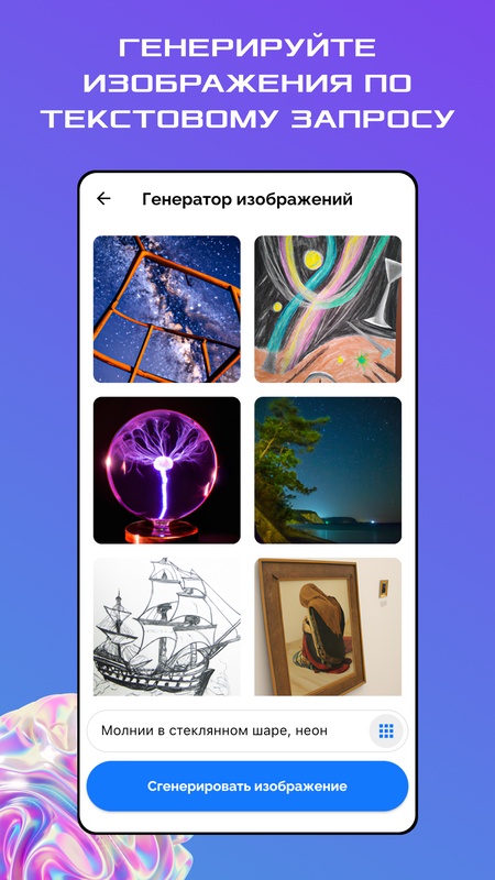Бесплатное приложение в котором объединены нейросети GPT и DALL-E.