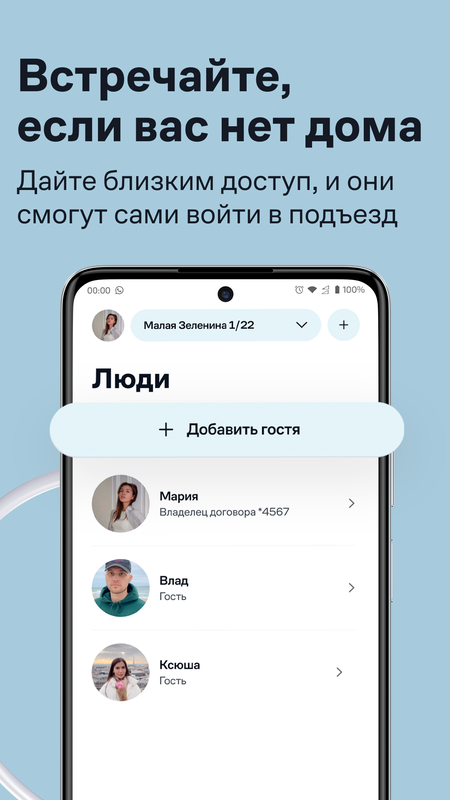 Пользуйтесь семейным доступом — к одному домофону можно подключить сразу несколько человек.