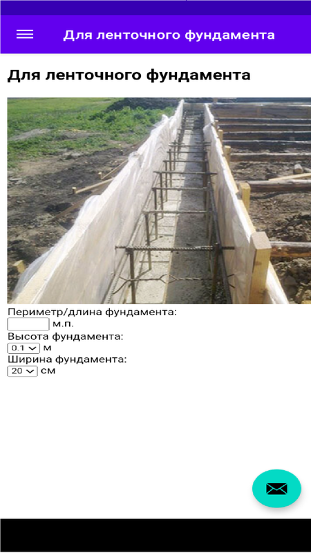 Введите в соответствующие поля параметры в метрах (длина, высота, подошва). Калькулятор автоматически рассчитывает необходимый объем бетона исходя из введенных данных. Не забудьте прибавить к полученному результату 3-5% объема на потери.
