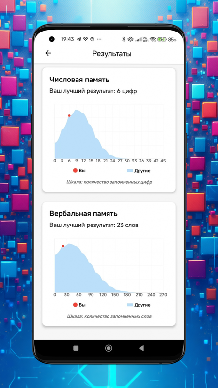 Выполняя короткие, но насыщенные тесты, вы сможете не только оценить свои текущие способности, но и отслеживать прогресс со временем. А ещё — сравнивать результаты с другими пользователями и узнавать, насколько вы быстры, внимательны и умны по сравнению с ними.