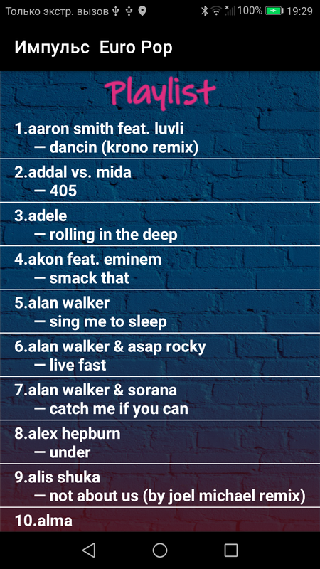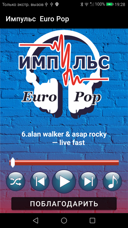 Благодаря этому приложению Вам не нужен интернет для прослушивания любимых популярных песен. Слушайте треки даже там где нет радио сигнала, хоть на природе, хоть на необитаемом острове. Мы рассчитываем на Вашу добровольную благодарность, поэтому Импульс не публикует рекламу, нет покупок и подписок. Слушайте и наслаждайтесь!