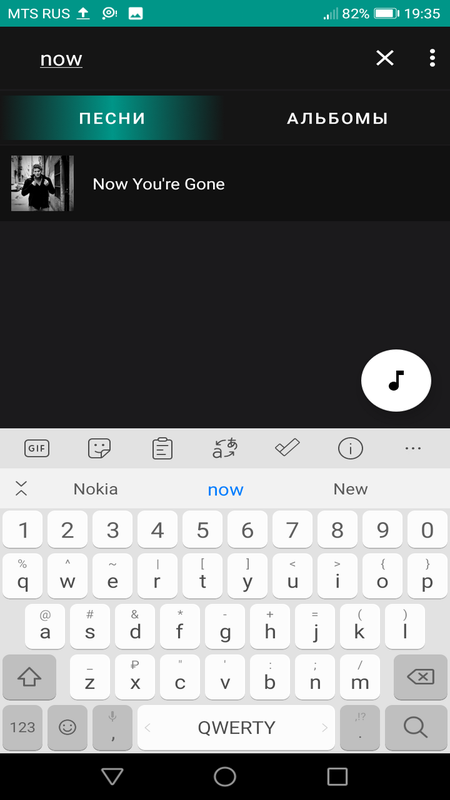 В разделе "Песни" отображены музыкальные композиции, имеющиеся на мобильном устройстве.