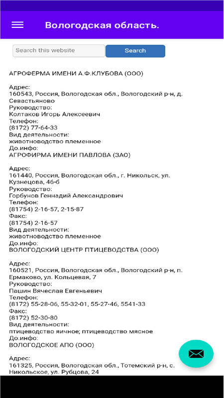 Вы легко получите список КФХ по каждому региону Российской Федерации, узнаете контакты фермера, адрес совхоза, телефон апк или сельхоз организации и другую справочную информацию по с/х предприятиям.
