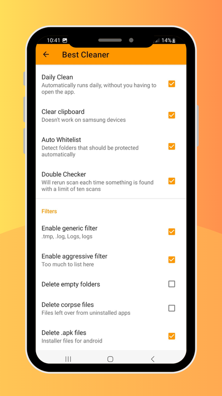 Просто существует слишком много приложений, которые утверждают, что ускоряют работу вашего устройства. На самом деле они ничего не делают. Лучший уборщик предназначен только для очистки вашего телефона путем удаления безопасного удаления файлов, что не только освобождает много места, но и улучшает вашу конфиденциальность. Так как Best Cleaner удаляет файлы .log, которые хорошо регистрируют то, что вы делаете.