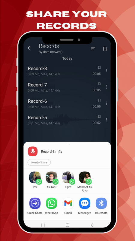 -Создавайте записи в форматах M4A и WAV.