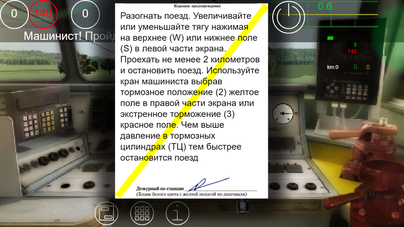 Управление осуществляется при помощи всего 5 кнопок. Две клавиши слева предназначены для набора и сброса позиции контроллера, а три справа отвечают за положение крана управления тормозами. Для начала рекомендуем вам пройти небольшое обучение на тренажере, где вы ознакомитесь со всеми ключевыми механиками. Не превышайте максимально допустимую скорость, ведь в противном случае уровень будет считаться проваленным. Чем ниже давление в тормозной магистрали, тем быстрее тепловоз остановится. Обязательно сделайте остановку перед красным светофором, чтобы не пропустить нужную станцию. Внимательно следите за указателем профиля пути, который будет информировать вас о предстоящем подъеме или спуске. Если у вас случилась какая-либо непредвиденная ситуация, свяжитесь с диспетчером.
