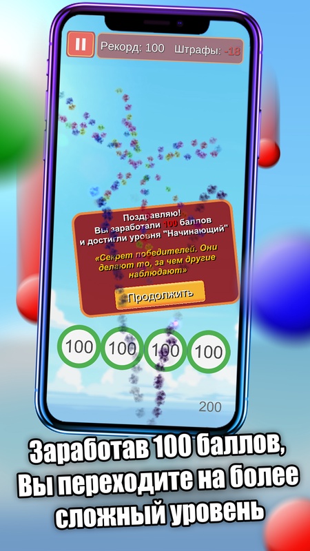 - Лопайте одним касанием падающие "чужие" шарики и оставляйте "свои".