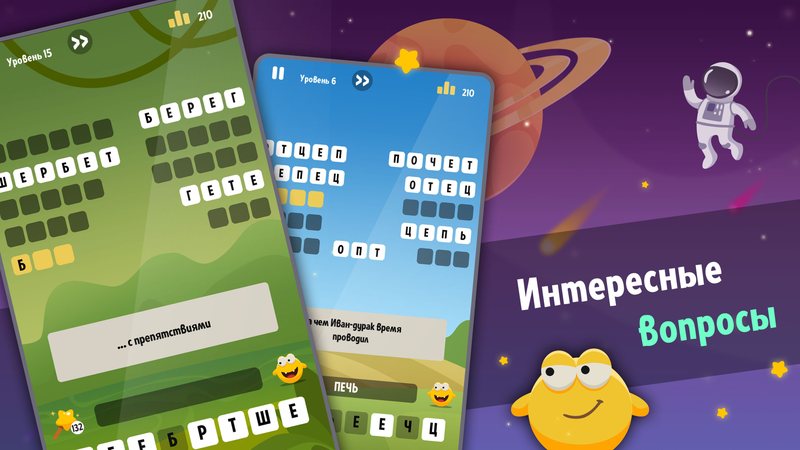 Первоклассная графика, словарь из нескольких тысяч русских существительных, более 400 уровней, интересные задания и забавные описания - вот что ждет вас в "Угадай Слова". Эта игра в слова и все задания в ней полностью на русском языке. Игра бесплатна, содержит встроенные покупки: буквы и отключение рекламы. Устанавливайте эту умную игру и наслаждайтесь!
