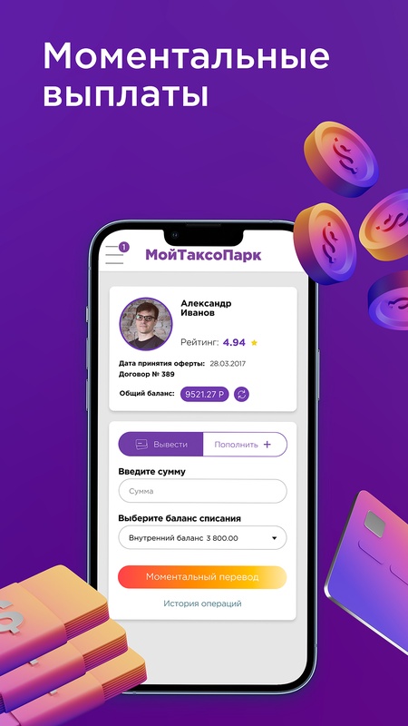 Приложение позволяет самостоятельно управлять балансами агрегаторов. Вывод средств на любую карту банка. Для работы необходимо зарегистрироваться в приложении.