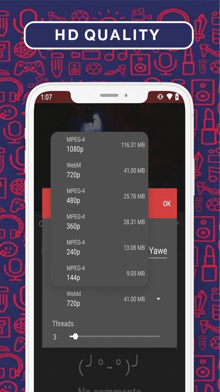 Воспроизводите и скачивайте любимые видео во всех возможных разрешениях с TubeMate. Выбирайте разрешение от 144p до 4K для загрузки выбранного видео. Получите захватывающий и непрерывный опыт просмотра HD-видео с TubeMate.