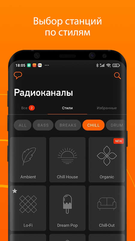 - выбор станций по стилям;
