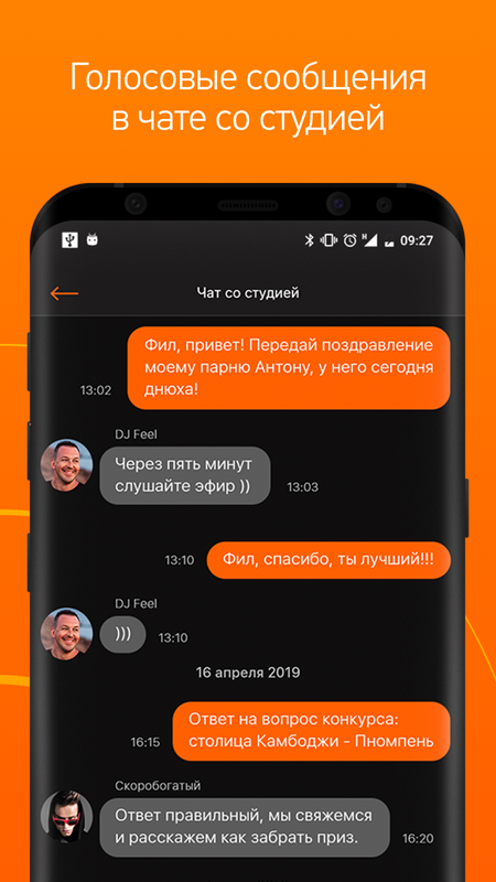 - чат со студией с голосовыми сообщениями;