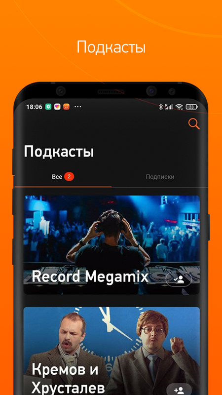 - подписка на подкасты с уведомлениями о новых выпусках;