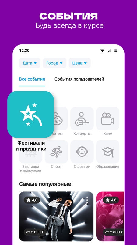 Мы собираем события в общую афишу с более чем 1000 городов по всей России и продолжаем пополнять этот список. А еще вы можете разместить свое событие, которое попадет в общую ленту наравне с самыми топовыми мероприятиями вашего города!
