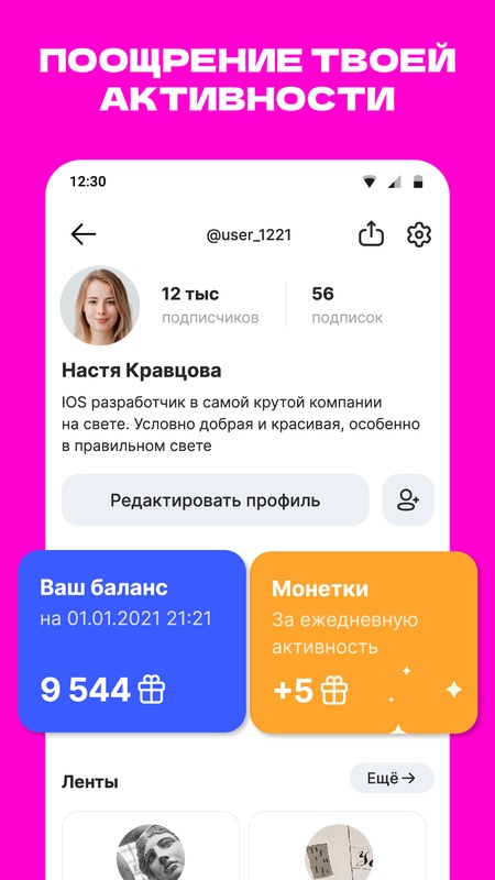Место, где любой автор контента может показать свои творения сразу на всех пользователей платформы ЯRUS. Если ты снимаешь большие или вертикальные видео, пишешь классные посты, выкладываешь интересные фотографии – тебя увидит вся аудитория приложения. Так ты сможешь набрать себе подписчиков и получать от них поддержку с помощью монеток!
