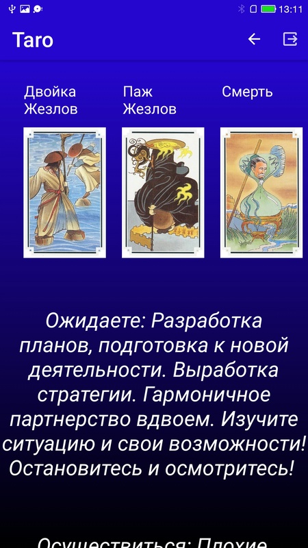 Очень удобный интерфейс, с реалистичными визуальными эффектами. Все Таро, предлагаемые этим приложением, бесплатны.
