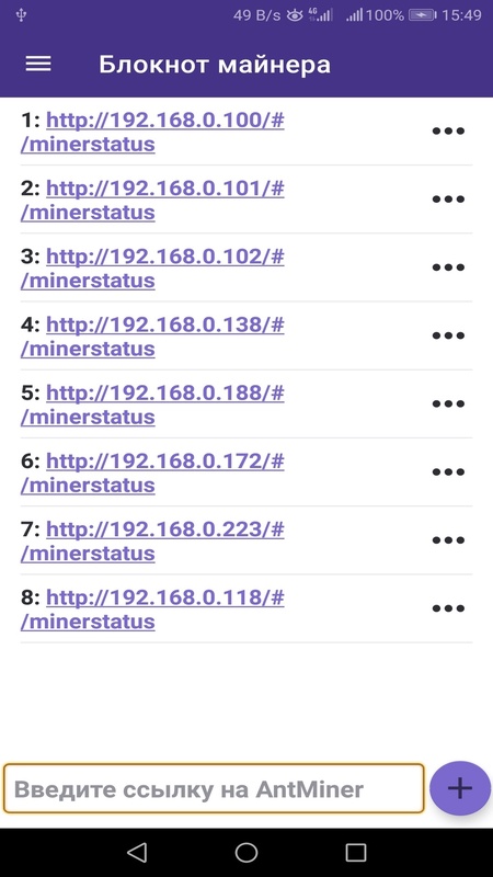 Во вкладке "Блокнот майнера" можно добавить адрес майнера, но чтобы войти в него надо быть в локальной его сети.