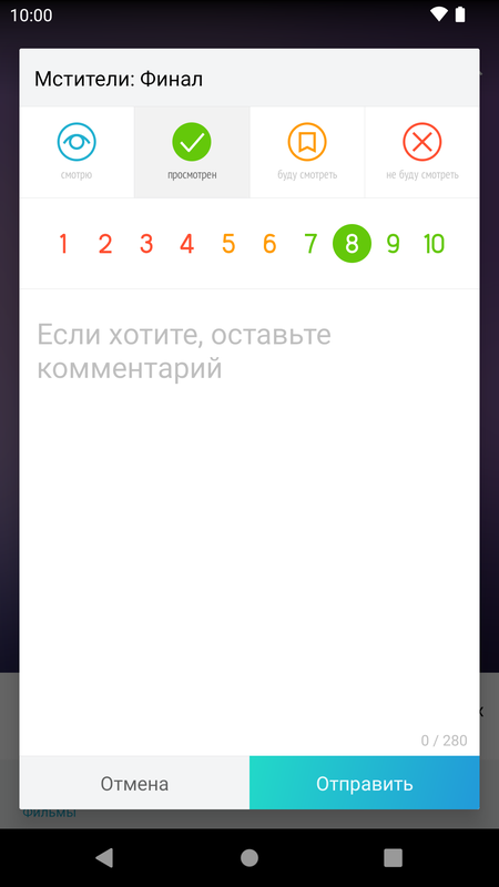 — добавление оценок, отзывов и статусов фильмам