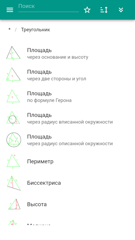 Функционал приложения позволяет рассчитывать площадь, периметр и другие характер