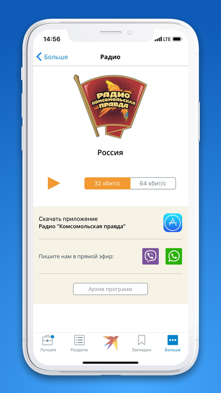 Слушайте подкасты и прямой эфир радио "КП", смотрите фото и видео через встроенный плеер прямо в приложении. Сохраняйте статьи в закладки для чтения offline.