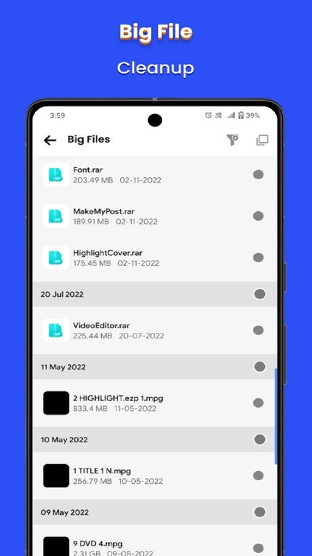 Big File Cleaner — это приложение для Android, которое поможет вам очистить ненужные файлы большого размера.