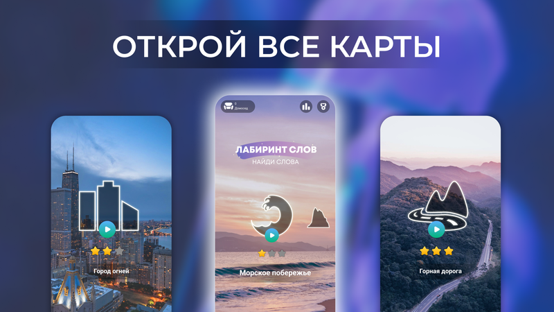 Игра в поиск слов Лабиринт слов - это тысячи уровней словесного наслаждения. Все, что вам нужно делать - это находить спрятанные слова. Вы видите доску из букв, придумав слово, вы проводите пальцем и собираете слово из букв. Звучит просто? Но даже самым опытным игрокам придется пошевелить извилинами. В случае если какой-то уровень окажется для вас сложным, смело используйте подсказки и двигайтесь дальше. Без сомнений эта игра доставит вам море положительных эмоций и прокачает ум.