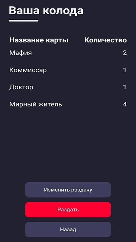 Приложение для помощи ведущему в карточной игре - "Мафия".