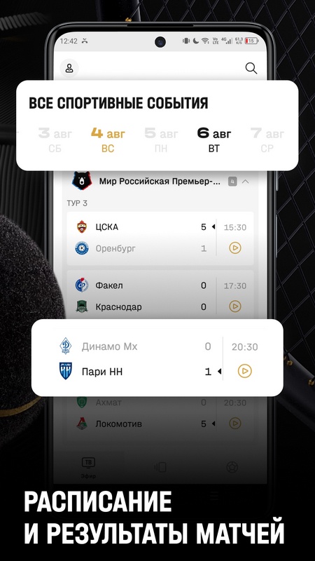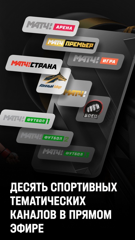 В приложении доступен прямой эфир каналов, который можно смотреть в любое время и в любом месте, а также записи лучших моментов и сторис топовых событий из мира спорта.