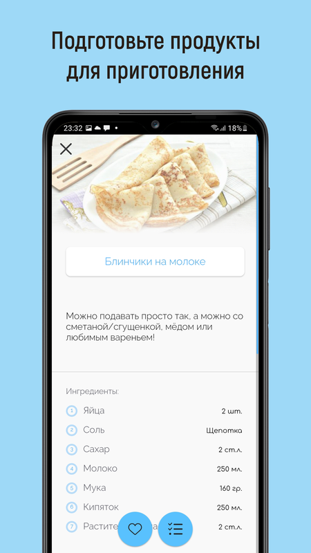 * Возможность сохранения любимых рецептов в "Избранном", чтобы иметь к ним быстрый доступ.