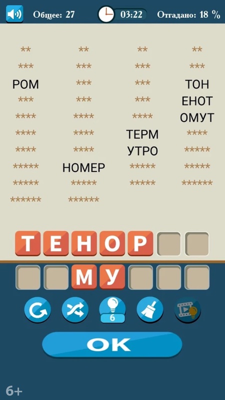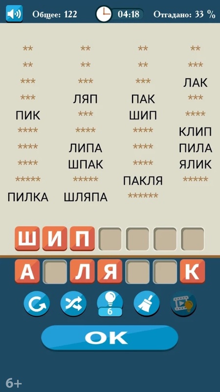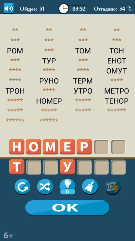 Каждое составленное слово добавляет к оставшемуся времени дополнительные 10 секунд. За каждое угаданное слово вы получаете очки, чем длиннее угаданное слово, тем больше очков вы набираете. Если вы сможете угадать все слова, то получите дополнительные 100 бонусных очков.
