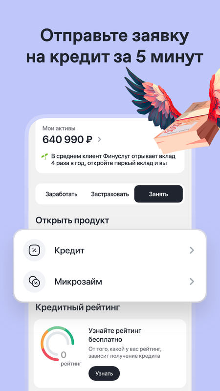 Финуслуги — маркетплейс для денег от Московской биржи. Сравнивайте, выбирайте и оформляйте вклады, страховки или подбирайте выгодные предложения по кредитам в любое удобное для вас время.