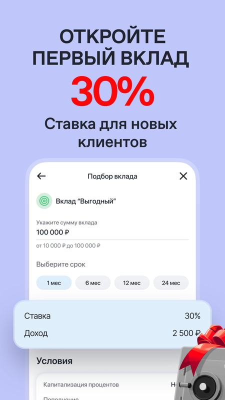 — Открывайте вклады из любой точки России онлайн, даже если офис выбранного банка отсутствует в вашем регионе.