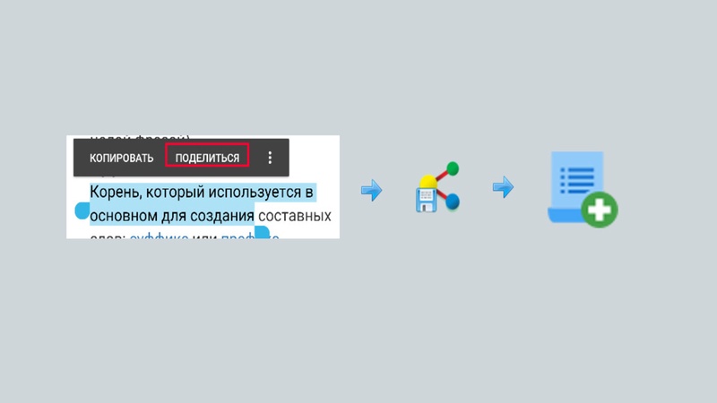Например, вы хотите сохранить на память цитаты из книги или части статьи интернет-страницы в браузере - для этого при чтении просто выделите необходимый кусок и отправьте его через кнопку Поделиться в приложение MW share 2 save. Выбранный фрагмент сохранится в файле автоматически.