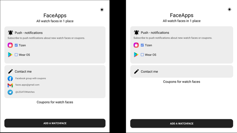 В приложение добавлены push-уведомления о новых циферблатах или купонах для WearOS и Tizen.