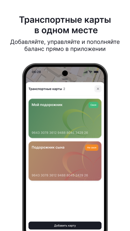 • Просто добавьте свою карту в приложение и активируйте её для поездок.