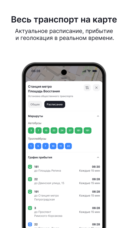 • Находите нужные маршруты, отслеживайте движение транспорта в реальном времени, узнавайте актуальные тарифы.