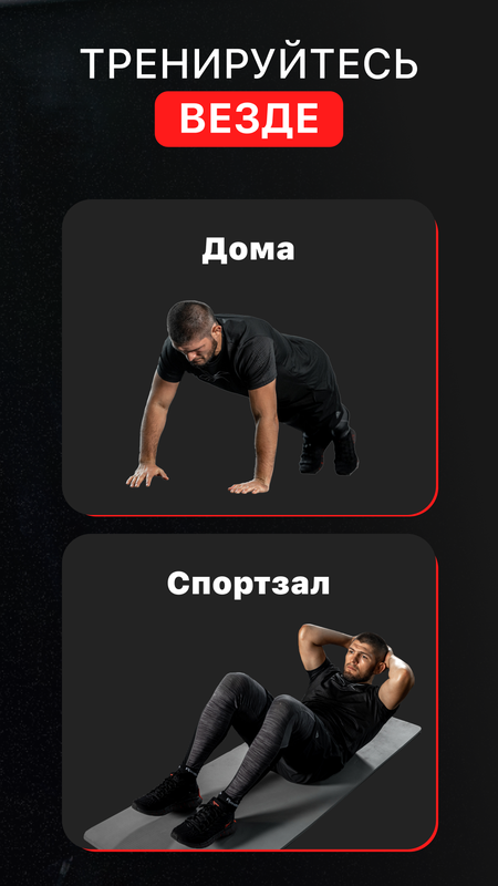Тренируйтесь вместе с чемпионом UFC! Сбросьте вес, накачайте мышцы и просто будьте в форме с новым фитнес-приложением от Хабиба Нурмагомедова.