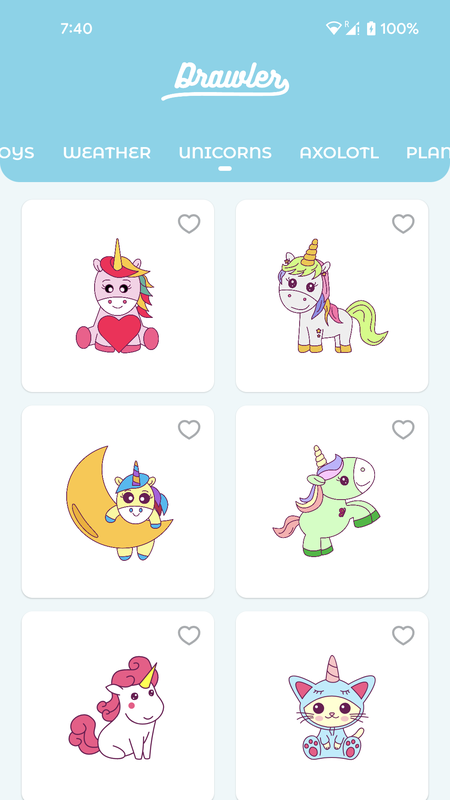 Не знаешь с чего начать рисование? Задаешься вопросом, что и как рисовать? Приложение поможет решить его. Веселые и милые зверьки 🦄, забавный кактус 🌵, маленький котенок 🐈 и многие другие рисунки – выбери то, что интересно именно тебе! База рисунков постоянно пополняется. Разнообразные рисунки понравятся как мальчикам, так и девочкам.