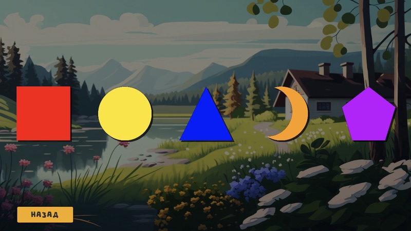 В задании "Изучаем фигуры" ваш ребенок познакомится с различными геометрическими фигурами, такими как квадрат, круг, треугольник, месяц и пятиугольник.
