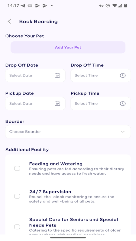 Удобство: получите доступ к широкому спектру услуг по уходу за домашними животными прямо из своего приложения, включая уход за домашними животными, осмотры здоровья, присмотр за домашними животными и многое другое.