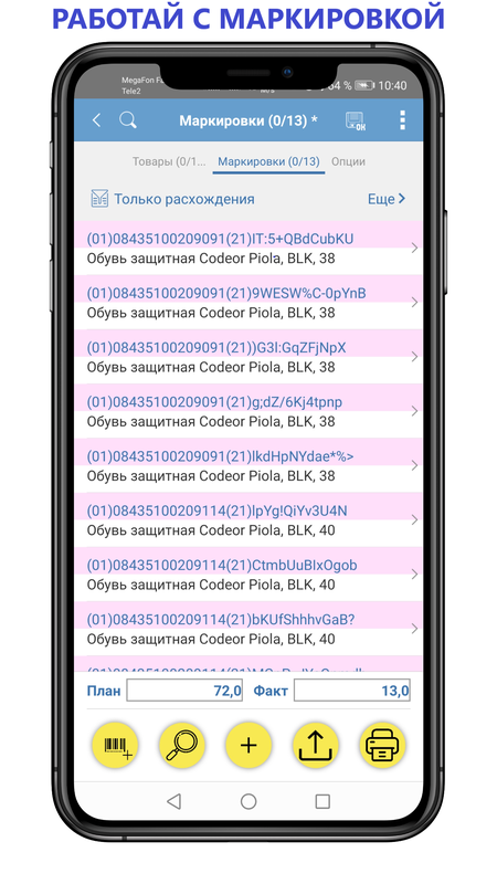 • Сбора штрих-кодов/маркировки без загрузки каталога товаров.