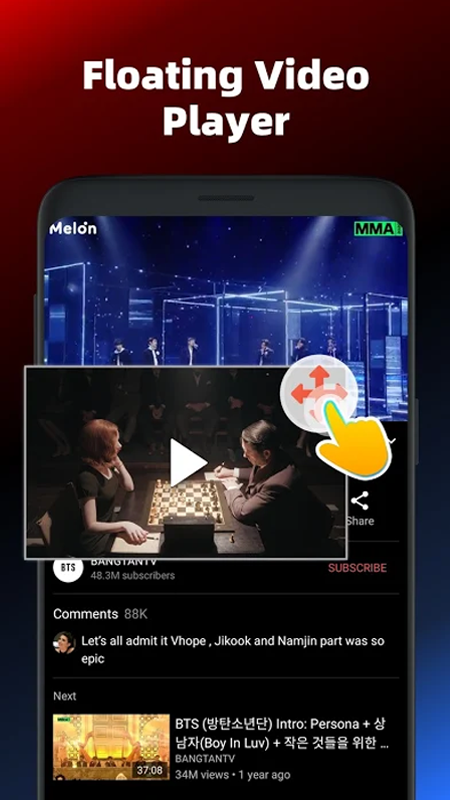 - Позволяет воспроизводить видео в режиме плавающего всплывающего окна.